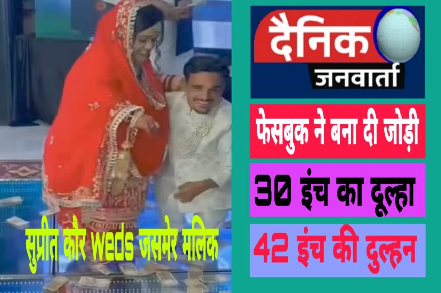 अंबाला। सोशल मीडिया प्लेटफार्म फेसबुक ने कई जोड़ियाँ बनाई हैं, ऐसी ही एक अनोखी जोड़ी 30 इंच के जसमेर और 42 इंच की सुप्रीत कौर की है। दोनों परिणय सूत्र में बंध गए हैं।
