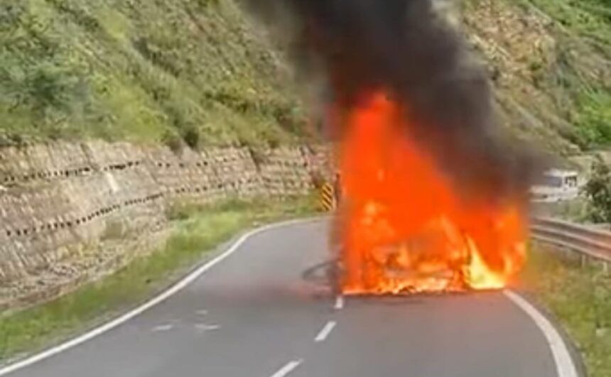शिलाई (सिरमौर)। हिमाचल प्रदेश के सिरमौर जिले में मंगलवार दोपहर एक बड़ा हादसा होते-होते टल गया। नेशनल हाईवे 707 (NH-707) पर धारवा के पास मिनस से शिलाई की ओर जा रही एक XUV कार अचानक चलते-चलते आग की लपटों में घिर गई। गनीमत रही कि कार में सवार चारों लोग समय रहते बाहर निकल आए और उनकी जान बच गई।