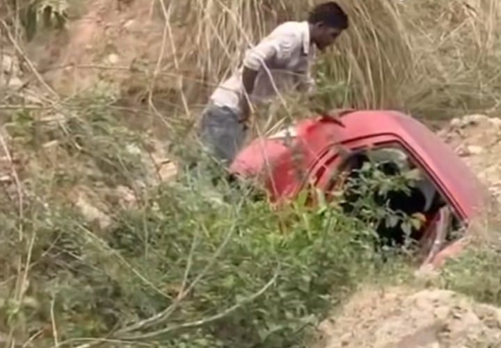जानकारी के अनुसार, कार के सभी सवार मंदिर की ओर जा रहे थे, तभी बिना हैंडब्रेक लगाए गाड़ी अचानक लुढ़कती हुई सड़क किनारे बने गहरे गड्ढे में जा गिरी। हादसे के वक्त गाड़ी में कोई मौजूद नहीं था, जिससे एक बड़ा नुकसान होने से टल गया।